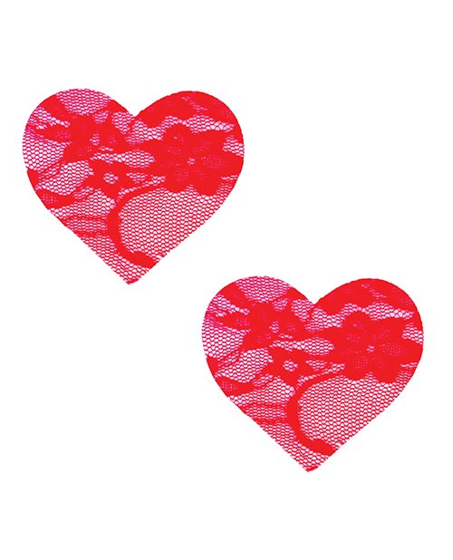 Neva Nude Lace Heart Pasties – Red O/S